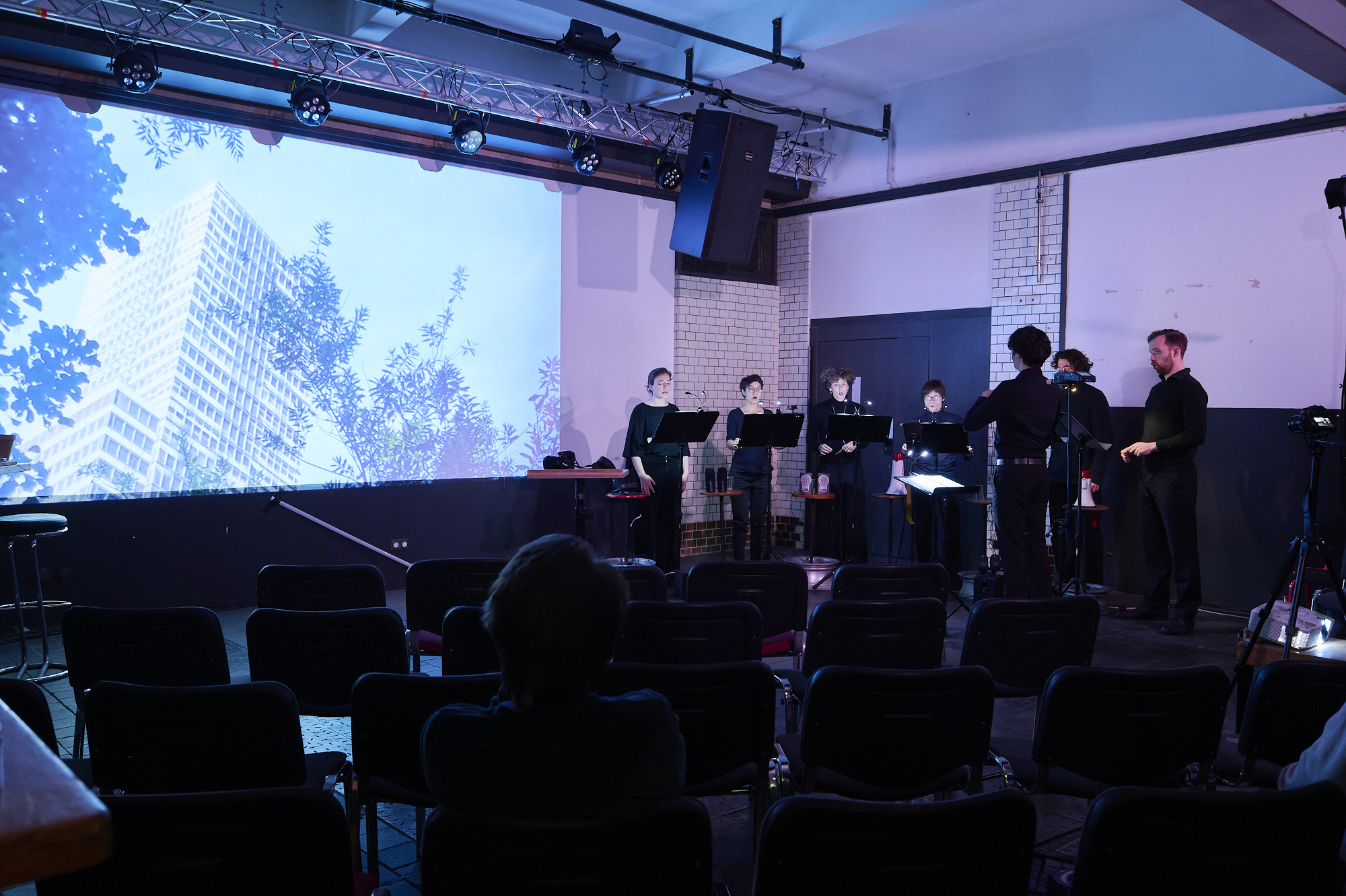 Das Rheinstimmen Ensemble präsentiert zusammen mit dem Tonkünstler Maximilian Sauer und der Videokünstlerin Linda Weidmann eine Konzert-Performance, die ein multimediales Portrait der Großstadt zeichnet.
