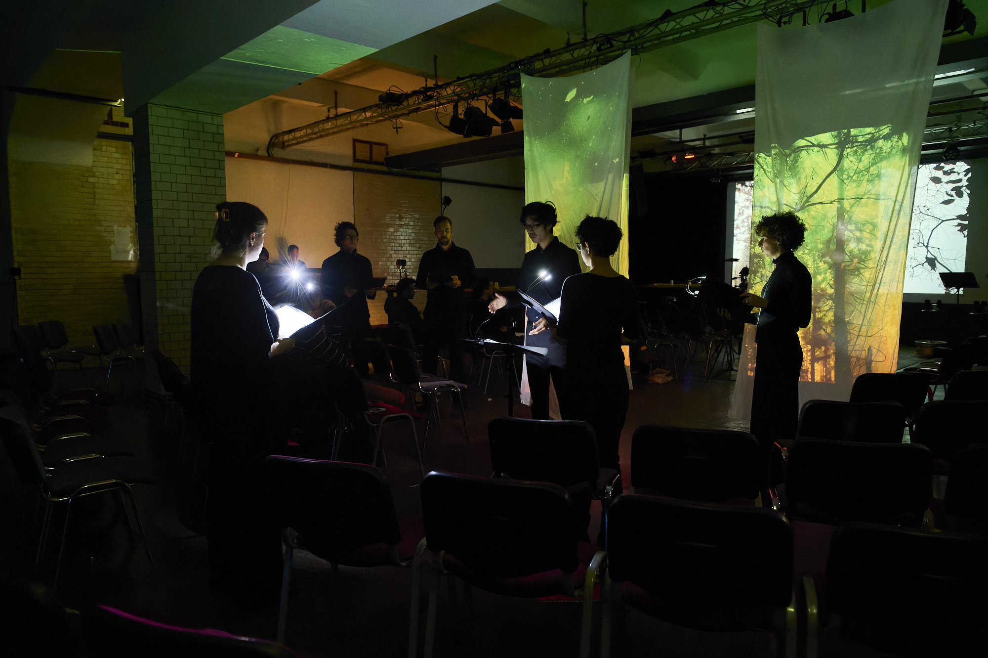 Mit Musik von Clément Janequin, Orlando Gibbons, Sigismondo d’India, Melchior Franck, Johann Hermann Schein, Gianluca Castelli*, Dieter Schnebel, Alvin Lucier, Luca Francesconi, Nicolas Kuhn** und Martin Wistinghausen**